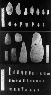 - 3500 / - 2200 avant JC : la fin du Néolithique voit l’unité culturelle des populations du chasséen céder la place à divers faciès régionaux, bien délimités territorialement. Parallèlement à l’apparition du métal, vont se développer le phénomène mégalithique, et les sculptures anthropomorphes (statues-menhirs). L’outillage sur pierre est à son apogée (pointes de flèches, haches polies, objets de parure...). Influence du groupe des Treilles (Millau) pointes de flèches typiques en sapin.